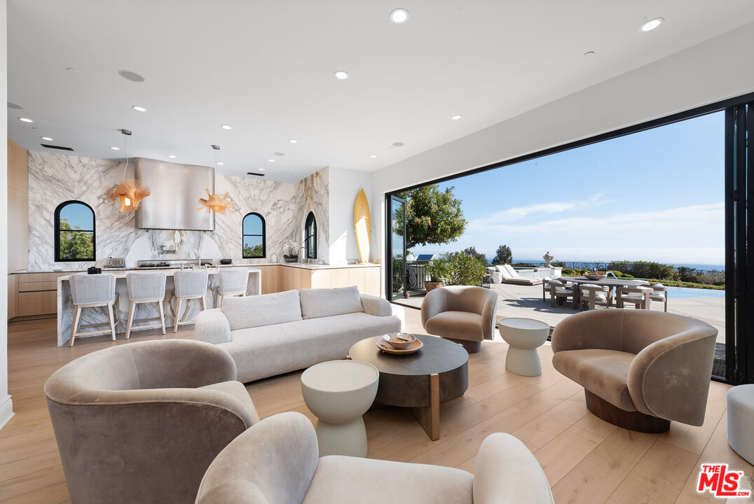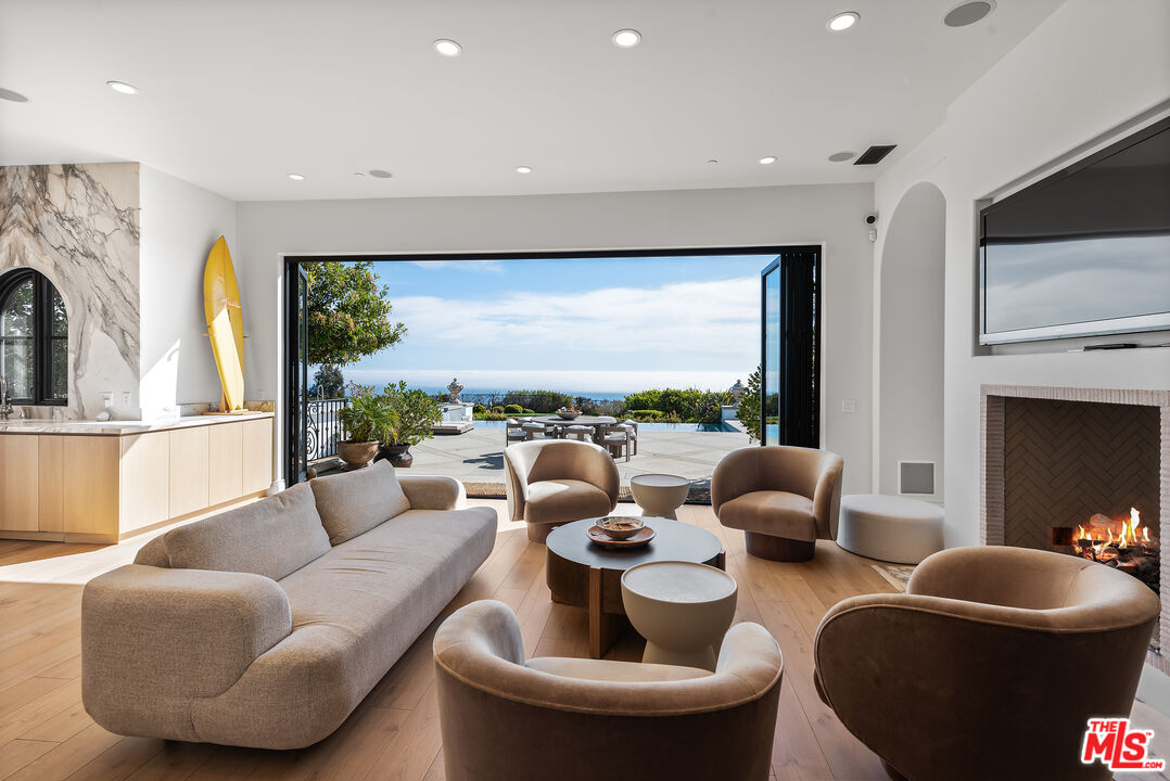 Perched behind gates on a private knoll along Malibu's prestigious hillside, Villa Victoria offers unobstructed ocean views, breathtaking sunsets, and an exquisite blend of cutting-edge technology and timeless coastal elegance. Moments from Paradise Cove, Point Dume, and iconic destinations such as Nobu, Geoffrey's, and Little Beach House, this estate delivers ultimate serenity with direct access to nearby beaches, hiking trails and the cascading Escondido Falls.Blending Mediterranean architecture with seamless indoor-outdoor living, the estate features soaring beamed ceilings, carved stone mantelpieces, French doors, and floor-to-ceiling windows framing the Pacific Ocean and Catalina Island. The open-concept design connects the living room, family room with fireplace, and a chef's kitchen to the expansive pool terrace, outdoor kitchen, dining areas, and day-and-night lit infinity pool with jacuzzi perfect for entertaining under the Malibu stars.The primary suite is a peaceful retreat, offering a fireplace, spa-inspired bathroom, generous walk-in closet, and a private wraparound deck with panoramic views. Five additional en-suite bedrooms, including a versatile study/library, provide elegant accommodations. Exceptional amenities include a fully equipped gym with Peloton, a luxurious home theater, and entertainment room with wet bar. Villa Victoria is a fully integrated smart home featuring a Control4 system managing lighting, security, heating, entertainment, and pool functions. High-speed Frontier fiber optics, dual Starlink satellite systems, indoor-outdoor Wi-Fi extenders, a SONOS integrated music system, motorized shades, Alexa voice assistants, and a dedicated server rack ensure seamless connectivity and convenience throughout. Climate control is optimized with NEST Learning Thermostats on each level. Wildfire protection includes early detection via Iridium satellite, high-pressure roof sprinklers, Rainbird perimeter irrigation, a 100-gallon fire retardant tank, and pool-fed backup water systems. Solar-powered dusk-to-dawn floodlights and smart air quality monitoring further enhance estate safety.Accessibility features include ADA-compliant design, a sleek pneumatic vacuum elevator, and an Acorn stairlift. The private motor court accommodates up to 50 vehicles, offering ample event hosting opportunities. Sustainability meets luxury with hidden roof-mounted solar panels, four Tesla Power walls, and a Generac backup generator, creating a self-sustaining micro-grid. The grounds include a lush English garden, organic fruit and vegetable plots, and a chicken coop providing fresh eggs daily. Just minutes away are world-class dining, shopping, and Pepperdine University's campus, as well as hiking and outdoor adventures through the Santa Monica Mountains.A true legacy estate, Villa Victoria embodies coastal serenity, innovative luxury, and timeless beauty and unparalleled offering in the heart of Malibu.